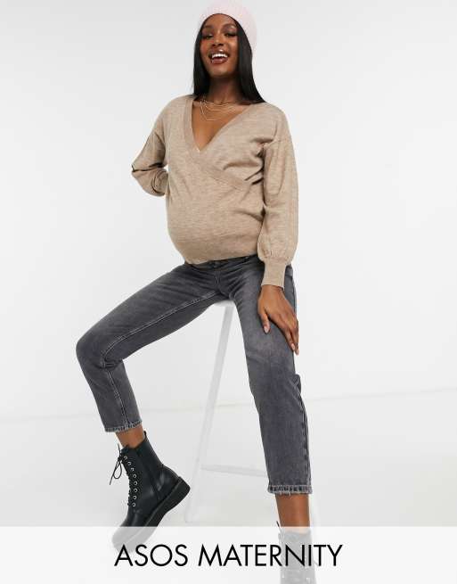 Emissary Design Maternity Wickelpullover In Taupe Emissary
