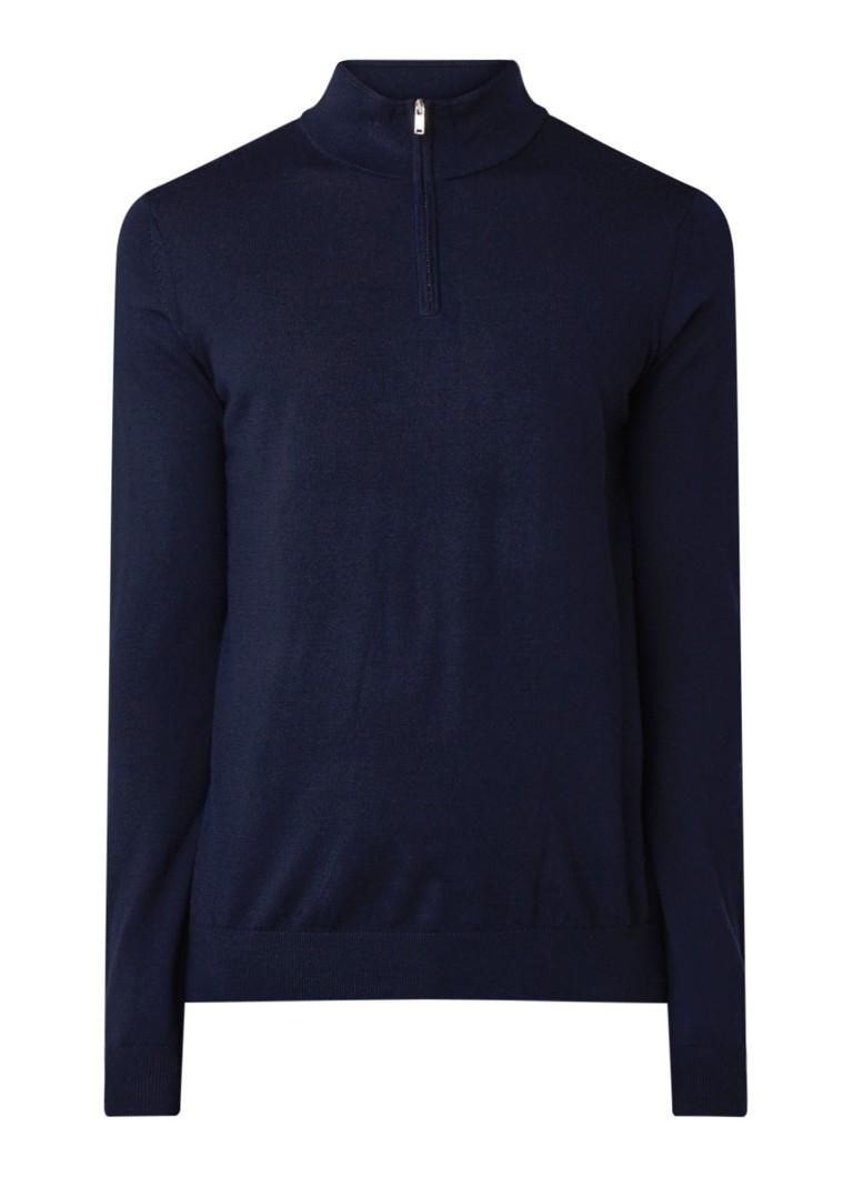 Reiss Blackhall Pullover Van Merino Wol Met Halve Rits Donkerblauw De Bijenkorf