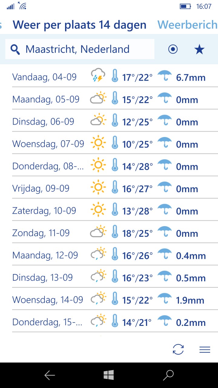 Je kunt de weersvoorspelling per uur bekijken of per dagdeel ochtend middag avond nacht. Kijk hier het stukje uit de uitzending van NPO1 terug met daarin het interview met Nederlands recordhoudster op de 24 uur Wilma Dierx over de Holland Ultra Tour de 14-daagse etappeloop die ze. Weer 14 daagse weersverwachting buien radar WeerOnlinenl Het weer vandaag en de weersverwachting tot 14 dagen vooruit.